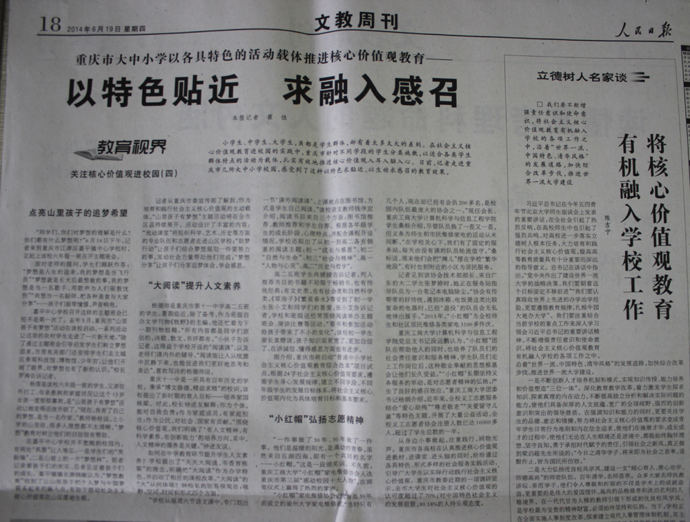 2014年6月13日上午,《人民日报》记者到tyc1286太阳成集团香樟林服务站,对小红帽家电维修协会的成员进行现场。2014年6月19日,《人民日报》第18版报道了小红帽30年如一日志愿服务的感人事迹。
