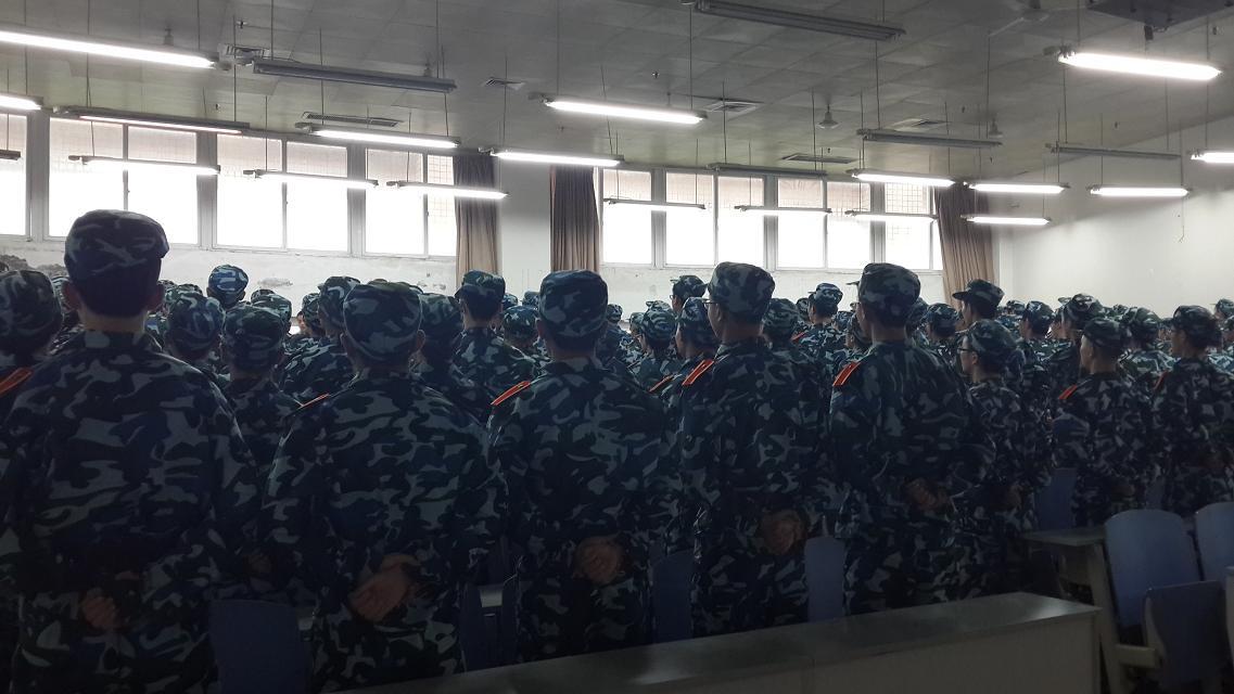 2014年6月30日,tyc1286太阳成集团迎来了为期12天的军训,计信公司大一各班员工及辅导员均参与其中。风雨挡不住同学们训练的脚步,更浇不灭大家锻炼自我的热情!同学们一大早便穿着整齐的军装,冒着大雨前往九教慧智楼进行第一天的军训。在教官以及辅导员讲明纪律后,正式的训练便开始了。站军姿、练坐姿、脱帽敬礼、踏步走,虽然训练严格又辛苦,但同学们依旧刻苦努力,毫不松懈!训练过后,同学们精神活力,热情不减,又和教官们一起唱起了军歌,嘹亮的歌声在教学楼里回荡,让听到的人都不禁热血沸腾!
