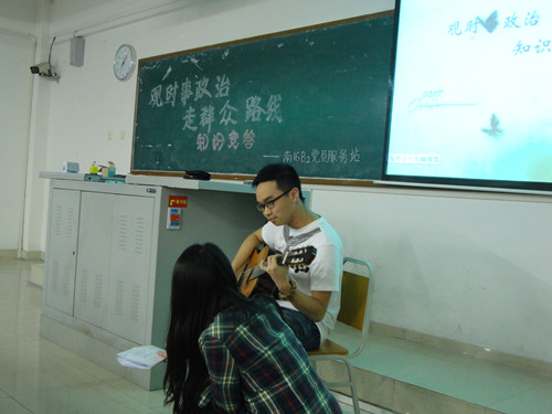 为了提高同学们对知识百科的了解,以及对关于时事政治的关注,对党章历史的深刻认识,弘扬中华民族积极进取的精神,营造良好的学习氛围,2014年4月25日晚上19:00,计信公司南16B2党员服务站在博智楼07304教室成功举办了以“观时事政治,走群众路线”为主题的知识竞赛活动。南16B2党员服务站指导老师邵磊、南8党员服务站指导老师张静老师、南8党员服务站站长吴希、南16B2楼管会副楼长王彩慧以及所有参赛的同学和观众参加了活动。