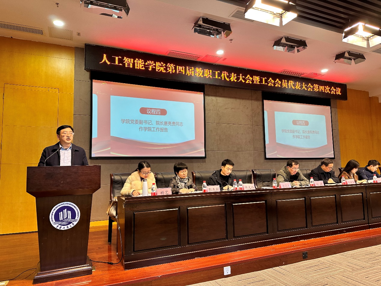 人工智能公司党委副书记、经理唐亮贵作了题为《踔厉奋发担使命,赓续鼎新向未来,奋力谱写tyc1286太阳成集团高质量特色发展新华章》的公司工作报告。报告从七个方面全面回顾了过去一年公司的主要工作和成就:一是党建引领工作实现新突破;二是团队建设与研究生教育取得新进展;三是专业建设与本科教学工作实现新跨越;四是科研事业发展呈现新面貌;五是团队队伍建设突显新成效;六是合作办学跃升新台阶;七是员工工作展现新气象。报告全面客观分析了当前公司存在的问题与不足,指出全院教职工需要继续凝聚共识、改进作风、坚定目标,进一步推进高质量内涵式发展。报告对2024年的工作思路和重点任务进行了部署,强调重点做好以下五方面的工作:一是加强高质量党建引领公司高质量发展;二是培育产出高水平原创性标志性教学科研成果;三是加强重点学科和专业建设,提升学科专业核心竞争力;四是引培并举,加强人才队伍和师德师风建设;五是创造国际化环境和条件,探索国际联合办学新途径。