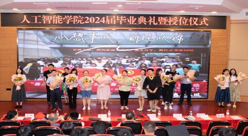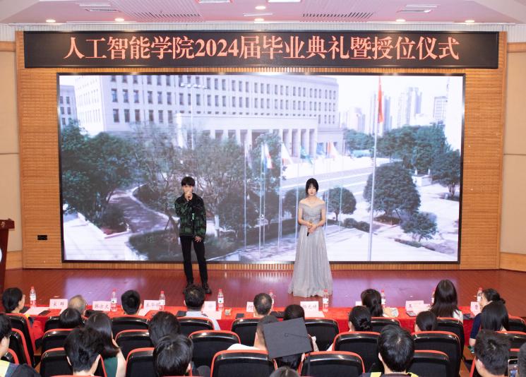 6月18日下午,2024届毕业典礼暨授位仪式在7200学术厅隆重举行。公司党委书记何希平、经理申渝、副书记张未、副经理杨光祥、秦华锋,学位委员会委员、教师代表、家长代表、全体辅导员及2024届本硕毕业生参加仪式。仪式由辅导员向娇娇、23电子一班李佳漪主持。