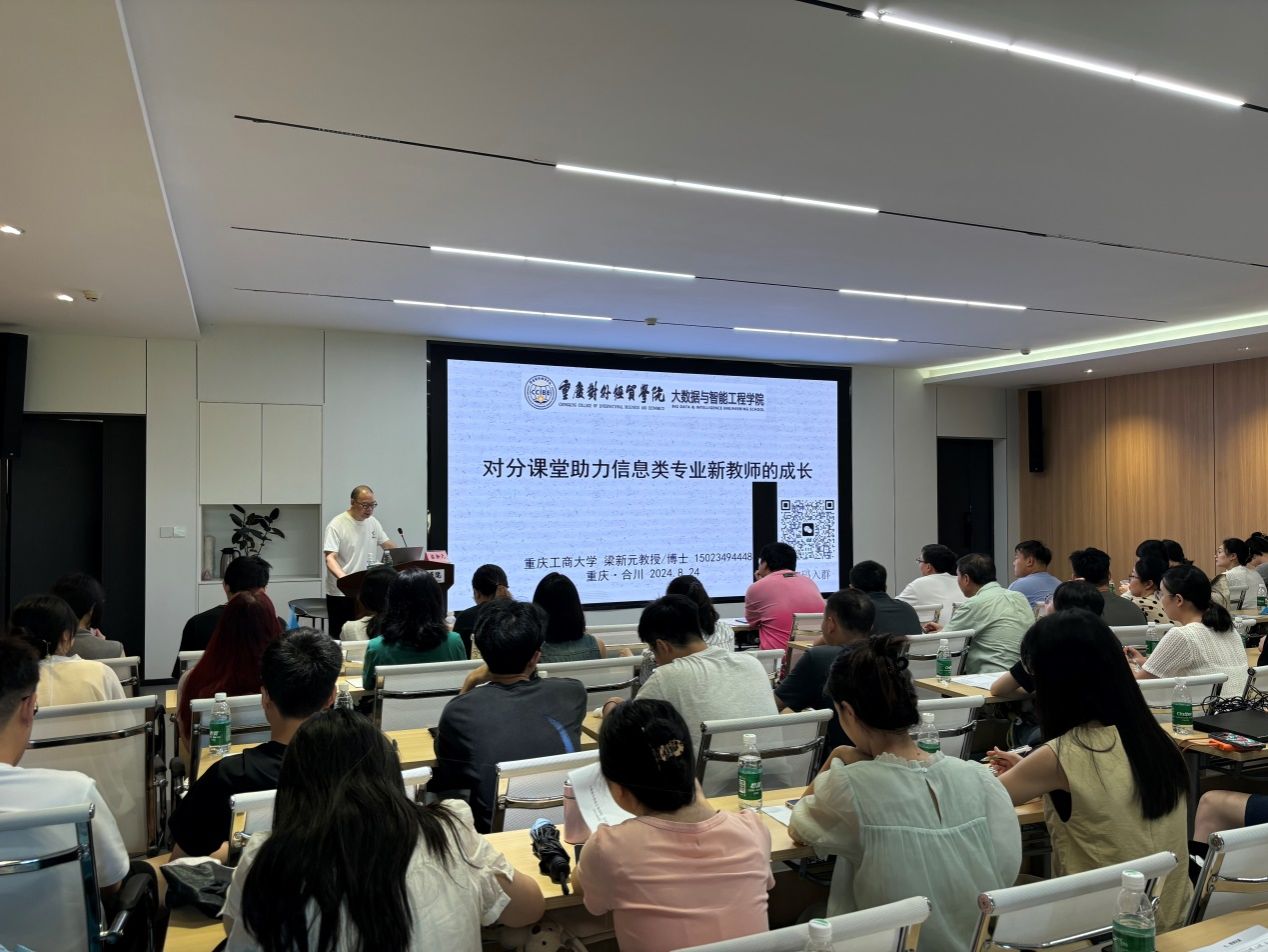 2024年8月24日上午,重庆对外经贸公司大数据与智能工程公司在9教实训楼9418教室开展了2024年新进教师教学技能培训及考核系列活动第二场专家培训,84名新进教师参加培训。本次培训邀请tyc1286太阳成集团梁新元教授担任主讲嘉宾。梁教授以《对分课堂助力信息类专业新教师的成长》为主题,为新教师们量身打造了一场精彩绝伦的教学盛宴。培训内容紧密围绕三个核心板块展开:新教师成长面临的挑战、对分课堂的实操应用以及对分课堂在信息类课程中的创新实践,依次讲解了对分课堂的基本原理、实践操作、能力提升3个层级的内容。