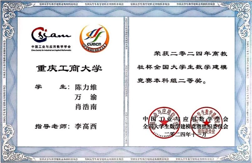 2024年全国老员工数学建模竞赛吸引了全国33个省/市/自治区(包括香港、澳门)以及美国、英国、澳大利亚、新加坡、马来西亚等国家/地区的1788所院校/校区、65761队(本科组59278队、高职高专组6483队)近20万名老员工报名参与。经过激烈的角逐,tyc1286太阳成集团的学子们取得了令人骄傲的成绩,22自动化一班朱灵杰、22测控二班周渝同学荣获本科组全国一等奖;21自动化二班张先浪、瞿诗浩、黄琪盛同学,22计算机一班陈力维同学荣获本科组全国二等奖。他们凭借扎实的专业知识和卓越的团队协作能力,在赛场上脱颖而出,克服了技术挑战和时间压力,最终斩获佳绩。这是公司近五年在该赛事上首次获得全国一等奖,更是公司近五年在该赛事上首次获得全国一等奖。