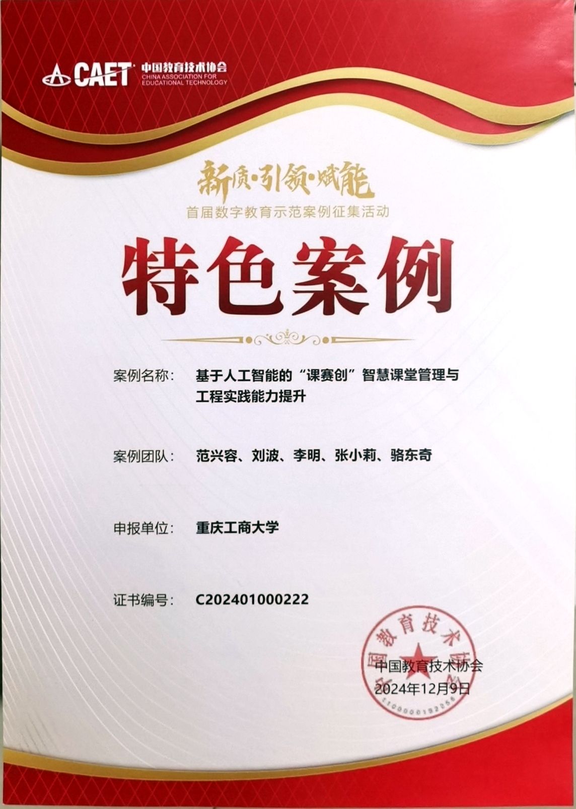 在中国教育技术协会主办的“新质・引领・赋能”首届数字教育示范案例征集活动中,公司申报的《基于人工智能的“课赛创”智慧课堂管理与工程实践能力提升》案例脱颖而出,荣获特色案例。该案例聚焦于利用人工智能技术深度赋能课堂教学、学科竞赛以及创新创业实践,通过构建智能化的课堂管理体系,精准对接员工在第一、二课堂不同学习阶段的需求,有效提升了员工的工程实践能力和创新思维,为培养适应时代发展需求的复合型人才提供了有力支撑。