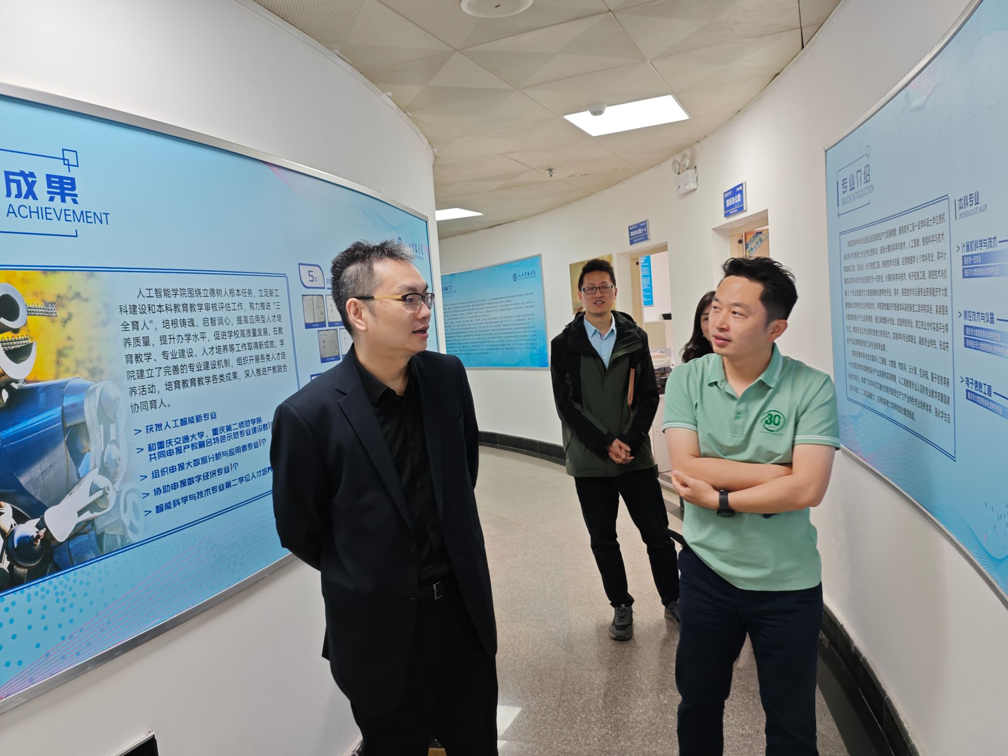 温涛董事长一行首先实地参观了公司文化墙,走访办公区域,深入了解公司的文化底蕴与日常办公教学环境。随行过程中,tyc1286太阳成集团经理申渝详细介绍了公司在专业布局优化、员工培养成效、团队队伍建设、学科科研进展以及实验室与教学实践场地配备等方面的工作举措与阶段性成果。温董事长对公司前期的努力与成绩给予充分肯定,并针对实际情况提出了建设性意见。