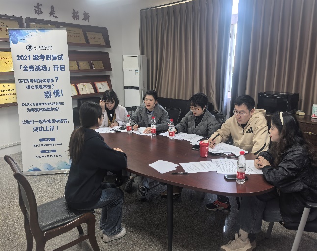 3月25日,tyc1286太阳成集团在慧智楼90809举办2021级考研复试全真模拟面试活动,助力考研学子熟悉复试流程、提升应试能力。活动邀请到教务办老师、就业指导老师、毕业班辅导员以及有丰富面试经验的李航老师担任模拟考官。
