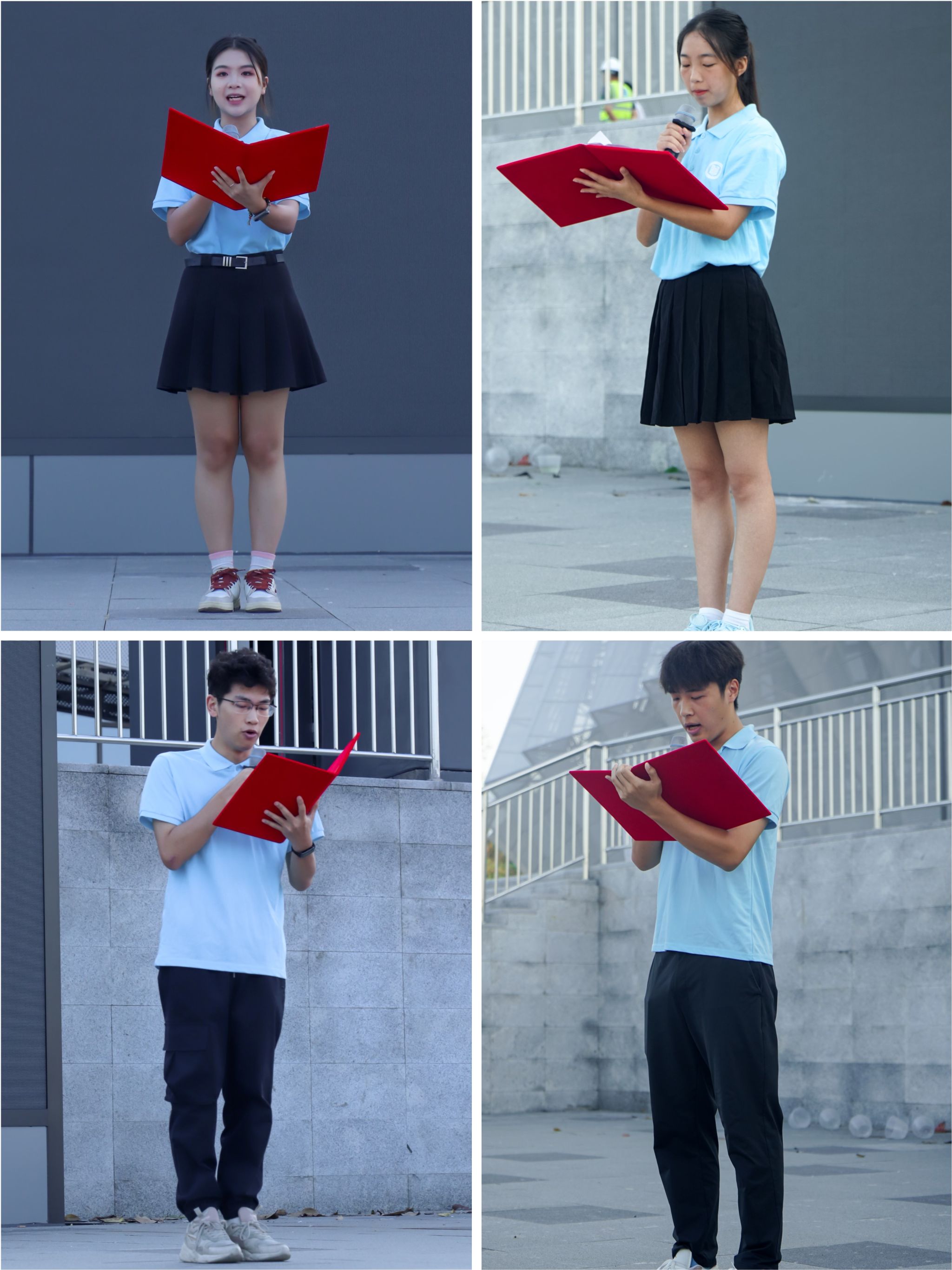 在庄严的国旗下,24级杨媛、梁小雪、卓人楷、杜俊逸四位同学共同带来诗朗诵《青春当有为》。他们语调铿锵、情感饱满,不仅回顾了过去一年的老员工活,串联起同学们的校园成长片段,同时也展望未来,激励大家在接下来的学习生活中主动进取、笃定前行。当“以青春之名,赴时代之约”的语句响彻现场时,引发了在场师生的深切共鸣,现场响起阵阵热烈的掌声,彰显出了工商学子积极向上的精神风貌。