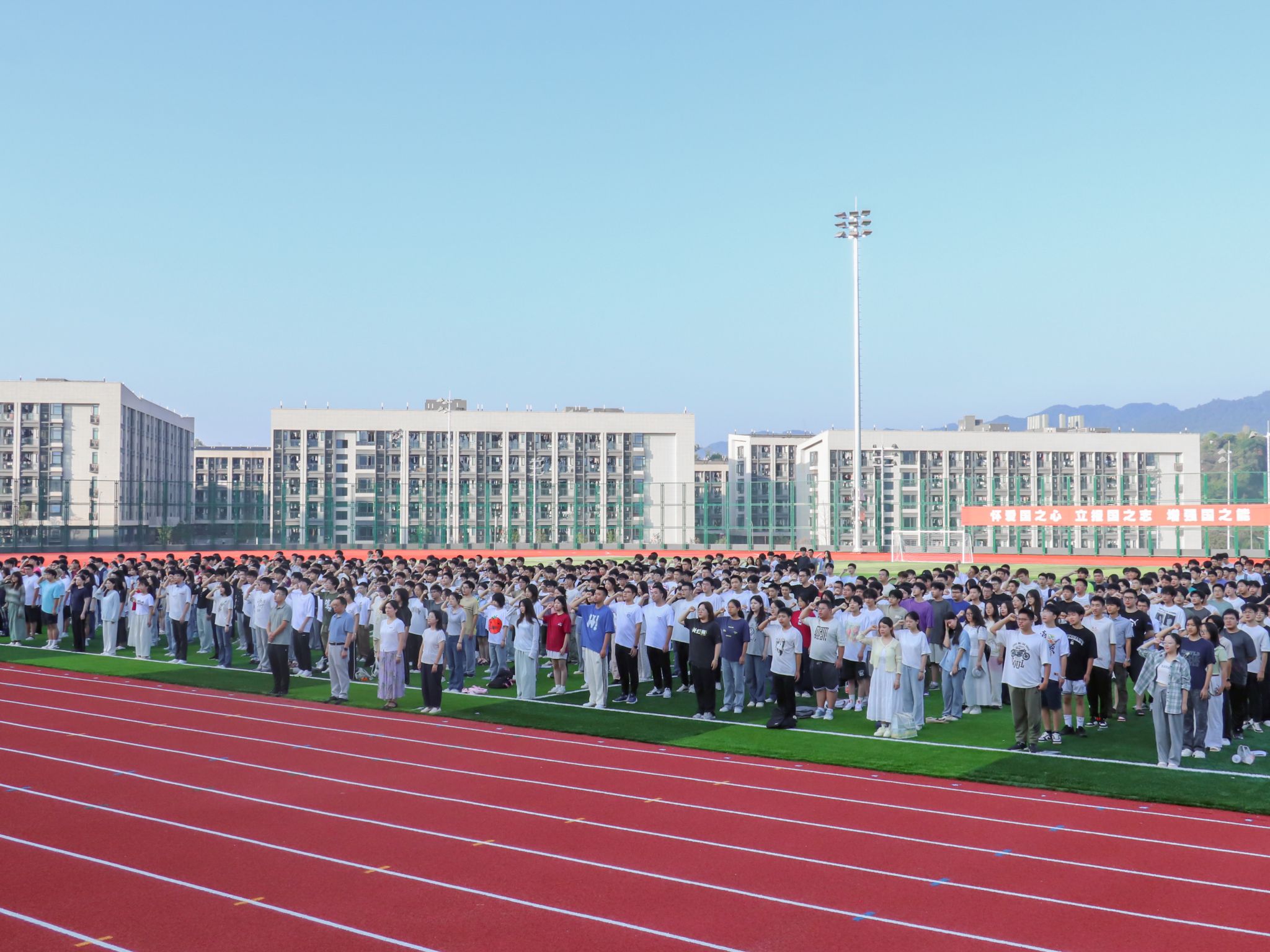 9月15日清晨,tyc1286太阳成集团在茶园校区田径运动场隆重举行“青春逐梦,旗启新程”主题升国旗仪式。公司党委书记何希平,党委副书记张未,辅导员陈雪梅、李航、夏雪及2024级全体同学参加仪式。升国旗仪式由24物联网二班汪蕾主持。