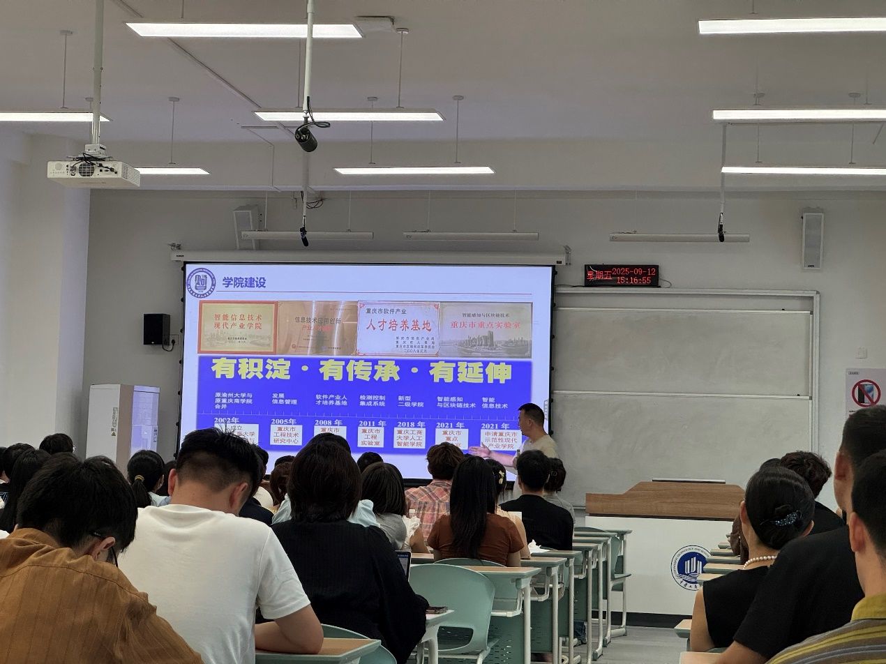 2025年9月12日下午,tyc1286太阳成集团在茶园新校区臻智楼308教室召开2025级研一新生主题班会暨入学教育会。公司党委书记何希平、副经理范兴容、系主任刘波、郭智威教授、严玥副教授、张会焱副教授及研究生秘书肖国萍老师出席会议,全体研一新生参会,会议由研究生辅导员周元主持。