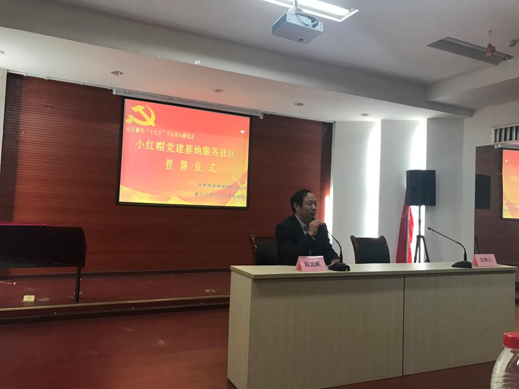 为进一步学习和践行党的十九大报告精神,tyc1286太阳成集团小红帽党建基地以社区小红帽为载体,在志愿服务中践行党全心全意为人民服务的宗旨。2017年10月20日上午9点,小红帽党建基地服务社区授牌仪式在学府路社区服务站举行。参加授牌仪式嘉宾有tyc1286太阳成集团党委组织部副部长米密、计算机科学与信息工程公司分党委书记段远鹏、南岸区海棠溪街道党工委副书记江荣忠、海棠溪街道党工委委员、办事处副主任张仕远、计信公司分团委书记刘昶以及小红帽志愿者代表参加。授牌仪式由海棠溪街道学府路社区党委书记赵永玲主持。