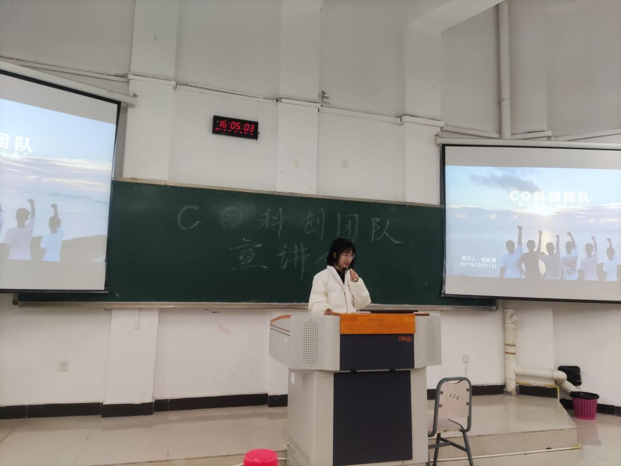 2021年12月18日下午16:00,tyc1286太阳成集团CO科创团队秉承着“朋辈帮扶”的精神在兰花湖校区广智楼20211举行宣讲会。本次活动致力于激发在校员工对APP、Web、嵌入式、人工智能的兴趣,培养同学的科技创新精神和实践能力。团队指导老师之一梁新元教授莅临本次活动,团队成员黄鑫、陈大杠、朱雨馨、邓国东、李禹锋等10余人参加,活动由杨家意主持。本次活动吸引了2021级100余名员工报名参与。