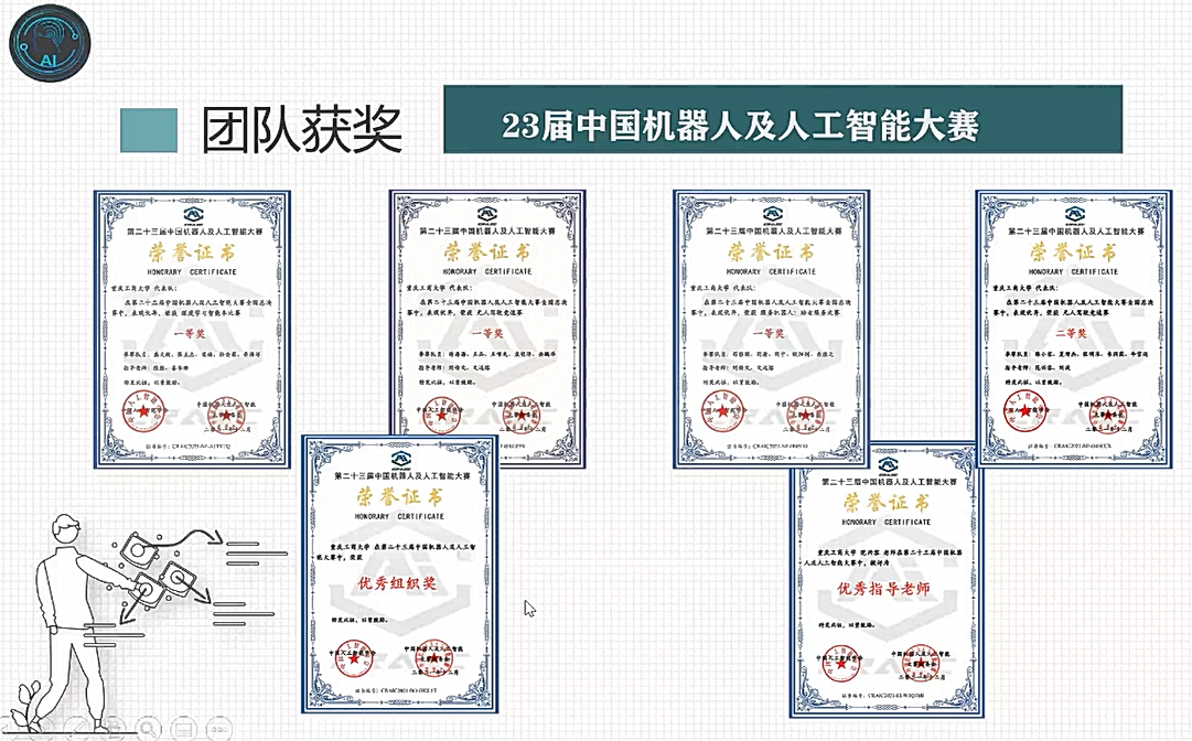 首先,苟银颖介绍了AR科创团队的成立背景、发展历程以及近3年团队取得的成绩。接下来,服务机器人小组代表周宁同学从参赛流程和成果展示等方面详细介绍了第23届中国机器人及人工智能大赛智能养老服务机器人项目。