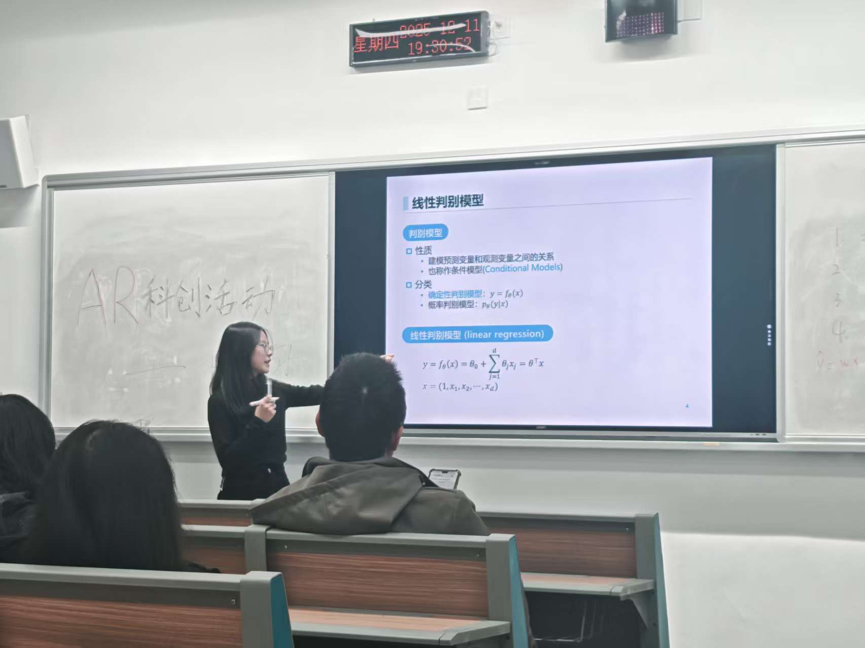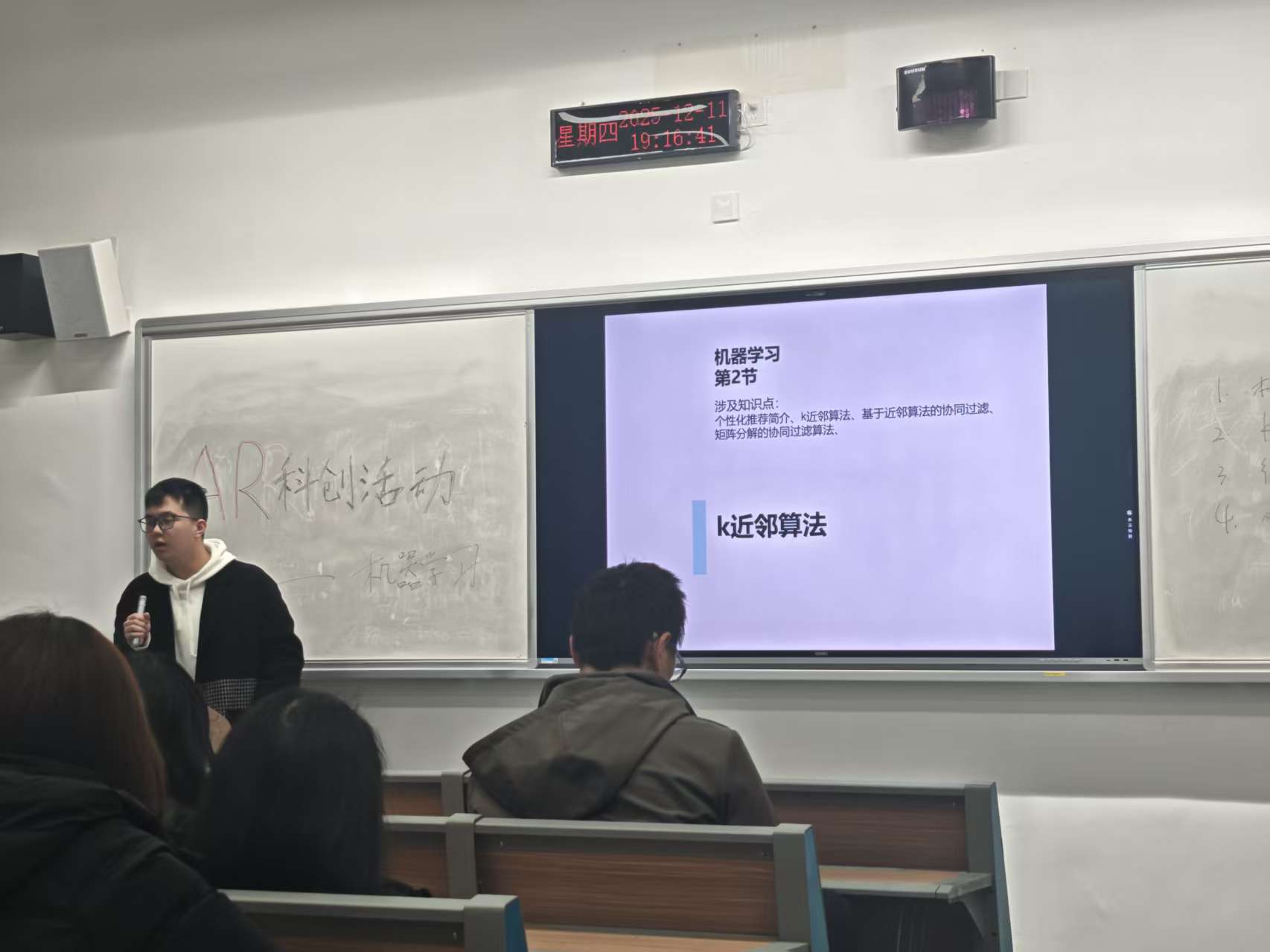 2025年12月11日,tyc1286太阳成集团AR科创团队在茶园校区宏智楼105教室顺利开展了首次线下学习交流活动。tyc1286太阳成集团副经理范兴容应邀出席。本次活动围绕“数据挖掘与机器学习”主题,设置了机器学习基础导论、K近邻算法剖析、线性回归原理讲解及代码实战演示四个核心环节。