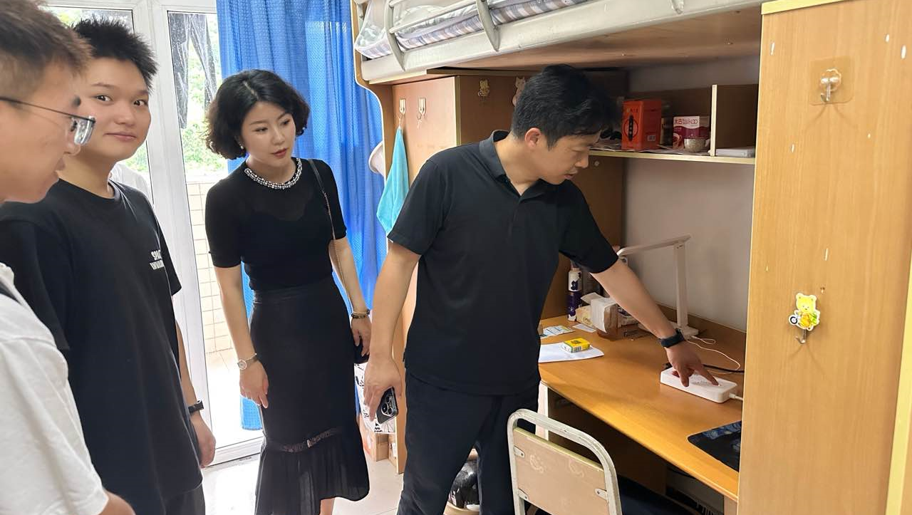 会后,tyc1286太阳成集团经理申渝和辅导员周元老师对暑假留校研究生的宿舍进行了安全和卫生检查。在检查过程中,主要针对宿舍是否存在违规大功率电器等安全隐患进行排查,并详细查看了宿舍安全的工作落实情况。
