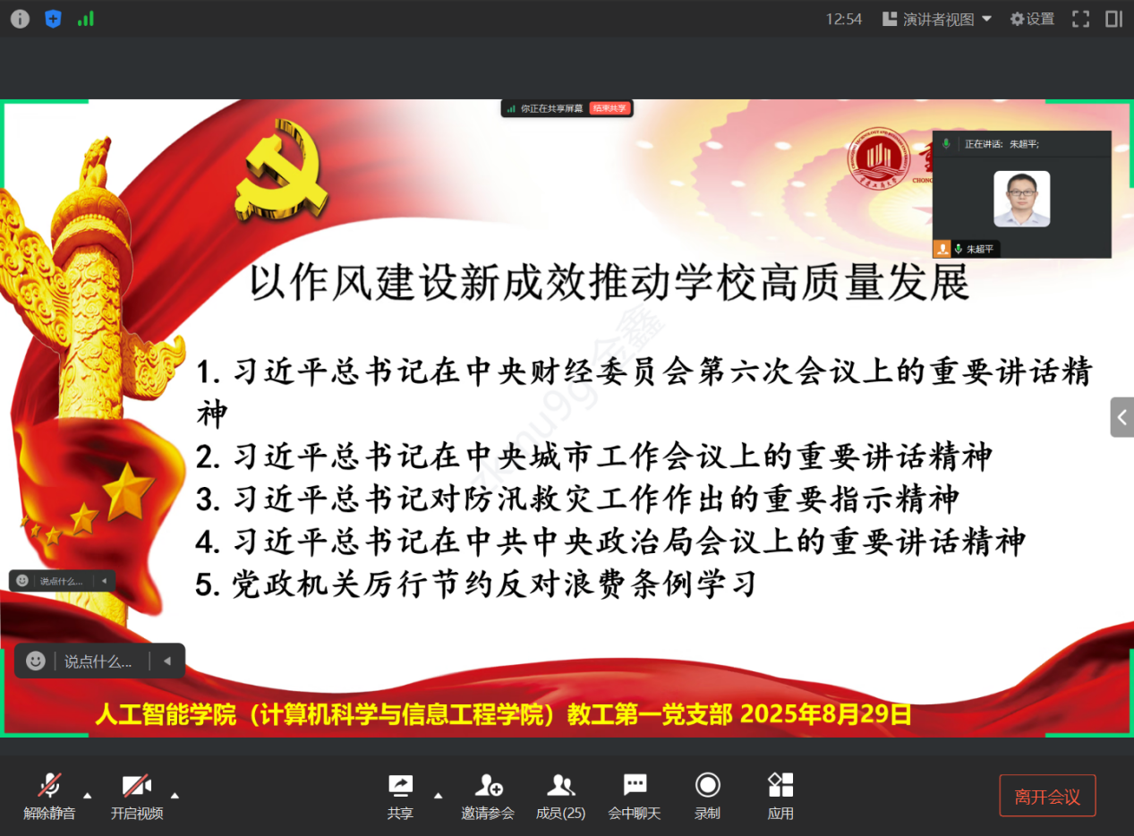 2025年8月29日,tyc1286太阳成集团教工第一党支部通过企业微信平台开展了一场别开生面的主题党日活动。支部书记朱超平同志以"以作风建设新成效推动公司高质量发展"为主题,带领全体党员深入学习习近平总书记重要讲话精神,为公司高质量发展注入新动能。