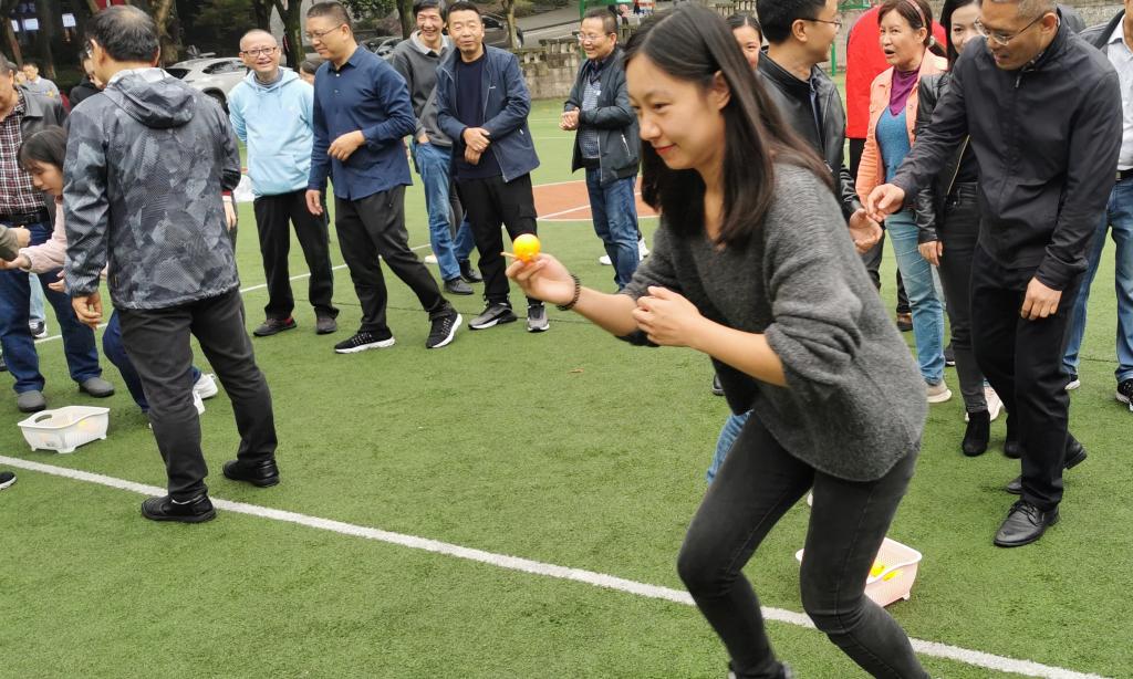 本次活动项目是“火线运输”,现场随机组队,采用接力的方式用筷子将乒乓球从起点运送往终点。比赛规则尽管简单,操作起来却并不容易,原本使得得心应手的筷子不再听话,越是用力想夹住乒乓球,却越是夹不起来。场上队员运球时的小心翼翼,球落地后追球时的无可奈何,将球送到终点后的如释重负,队友们都看在眼里,情绪也随着起伏,加油助威,鼓励打气。平时严肃严谨的老师们,轻装上阵,放飞自我,全情投入比赛,玩得高兴,赛得认真,活动在一片愉快、欢乐、和谐的气氛中圆满结束。
