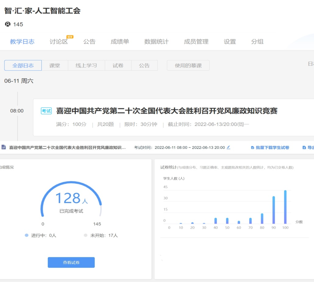 本次党风廉政知识竞赛采取线上答题的形式,答题内容涵盖中华人民共和国监察法、中国共产党纪律处分条例、习近平关于坚持和完善党和国家监督体系论述等内容。此次竞赛全院教职工踊跃报名参与,共有128名老师顺利完成了答题。经过评比,其中25名教职工成绩优异获得一等奖。
