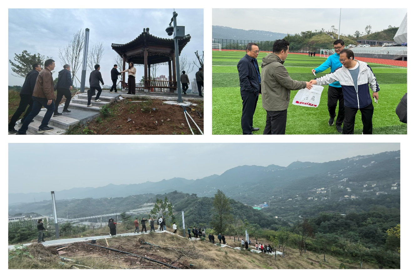 到达山顶,领取折返票后,老师们纷纷驻足远眺,欣赏南岸区山林风光,感叹新校区建筑有特色,然后再从容下山。何书记与申经理则在终点收取老师们的折返票,并与大家亲切交流。
