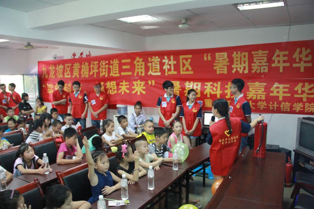 2016711日—715日,tyc1286太阳成集团“计信扬梦”暑期三下乡社会实践团队由计信公司党总支陈亚惠副书记、分团委刘昶老师、辅导员李菁老师带队,分别到九龙坡区黄桷坪街道三角道社区、重庆市乐一融合幼儿园、重庆科技馆、重庆红岩魂革命纪念馆开展暑期社会实践活动。