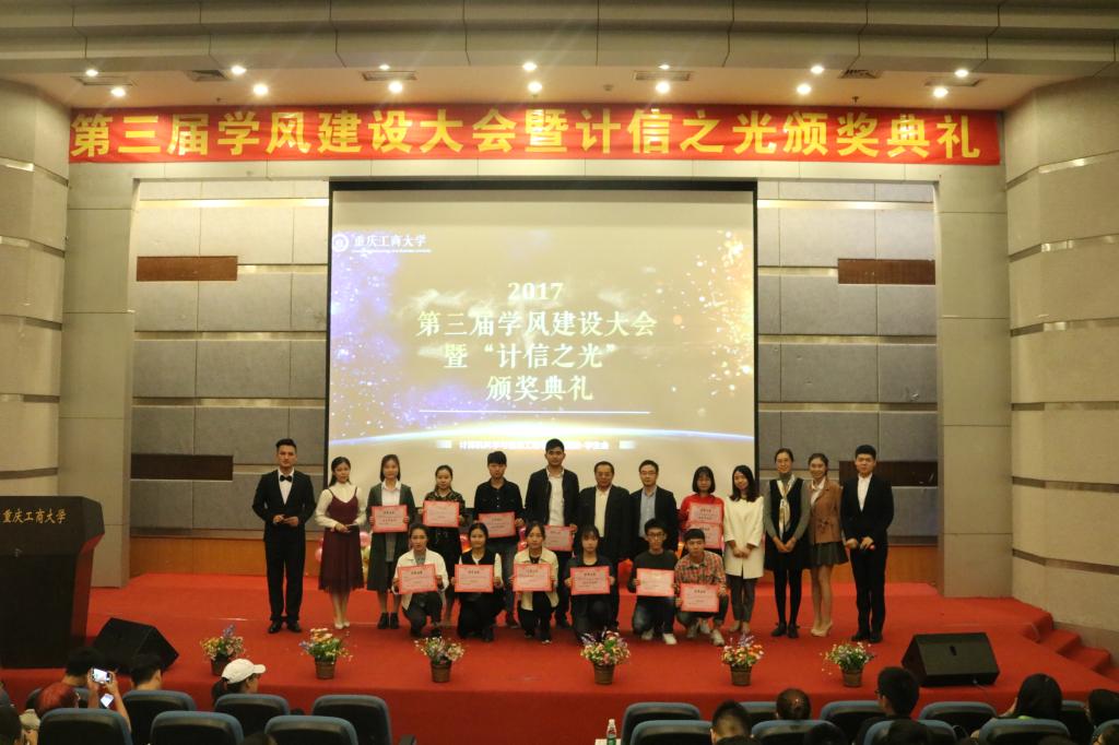 为推动和强化公司学风建设,提升员工的专业学习能力,激发科技的创新意识,弘扬甘于奉献的志愿精神,表彰2016-2017学年在学业、科创、文体、志愿服务等方面先进,激励广大计信学子学习优秀、继续前行。计算机科学与信息工程公司在11月3日晚19:00,于tyc1286太阳成集团博智楼7100学术报告厅举办了本次学风建设大会暨“计信之光”颁奖典礼。计信公司经理何希平教授、副经理胡卫军副教授、学团办主任何莉老师、分团委书记刘昶老师、辅导员邵磊老师以及2016级计信公司全体员工出席了此次活动。