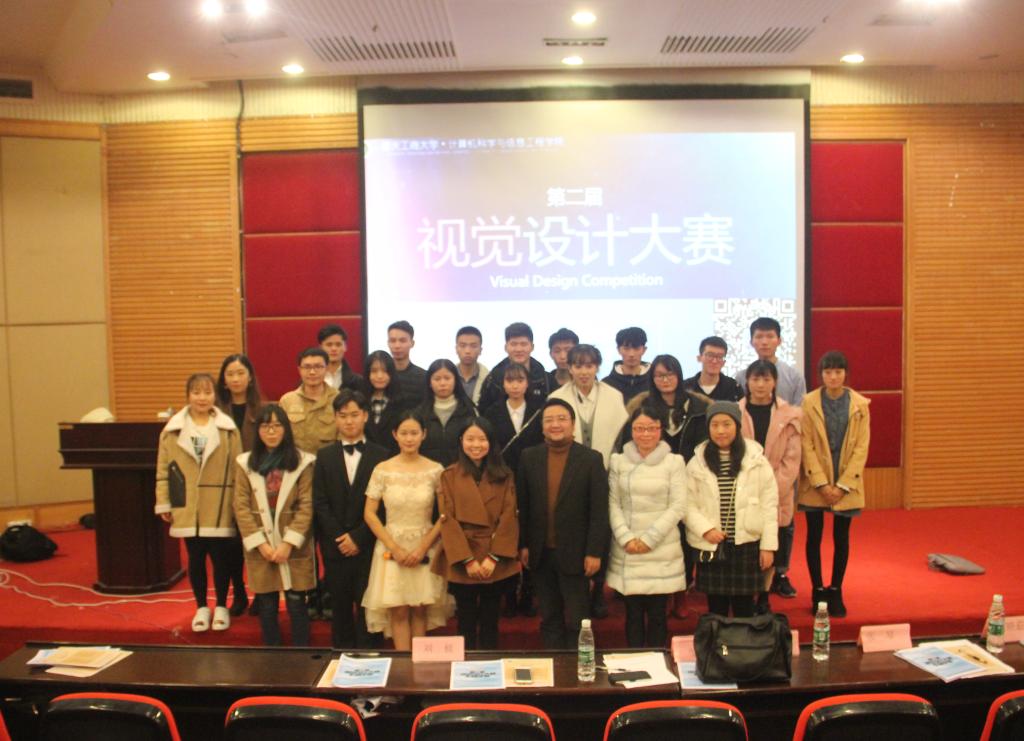 本次比赛邀请了通识公司党总支邹奇副书记、计信公司杨艺教授,第一届视觉设计大赛海报组冠军赵映茹、网页设计大赛冠军张琴担任评委。计信公司分团委书记刘昶、计信公司员工会全体成员、230余名观众参与本次活动。此次比赛一共收到来自计信、会计、财经、机械等12个公司,一共180多组作品。经过初赛的选拔,PPT组有8组选手、海报组有10组选手进入决赛。