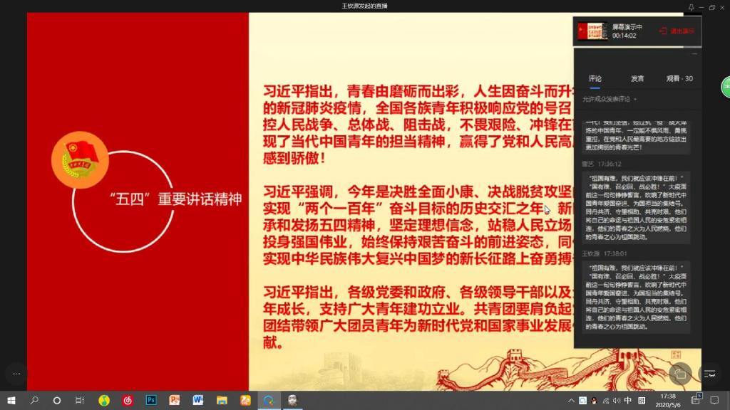 此次线上团日活动覆盖全院所有团组织。主题团日坚持以理想信念教育为核心,突出了思想教育的内涵,明确了新时代青年的责任担当,使“爱国、进步、民主、科学”的五四精神根植于广大青年员工的心中。