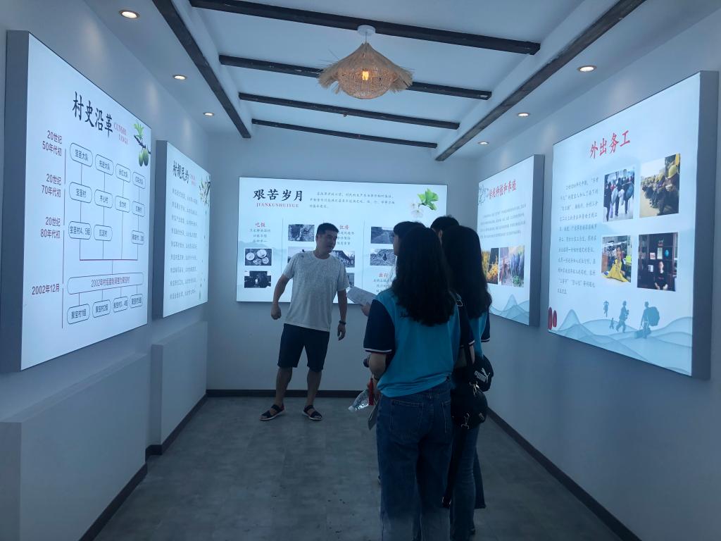 该村扶贫第一书记徐峰向实践团重点介绍了该村以“产业扶贫+乡村旅游”为抓手引导村民实现脱贫致富、落实“乡村振兴”战略的工作布局以及取得的成就。据悉,聚宝村于2015年就实现了整村脱贫,“脱贫摘帽不摘责任、摘帽不摘政策、摘帽不摘帮扶、摘帽不摘监管”的政策让聚宝村实现了稳定脱贫。该村因地制宜,构建起“土种李子、油菜、辣椒、榨菜及中药材种植”主辅结合、齐头并进的产业格局,同时抓好产业服务和乡村旅游,通过不断完善基础设施,开展村容环境整治,打造精品民宿等,发展起游、学、吃、住为一体的乡村旅游经济,使该村成为“春赏花、夏摘李、秋品橘、冬观雾”的好去处。