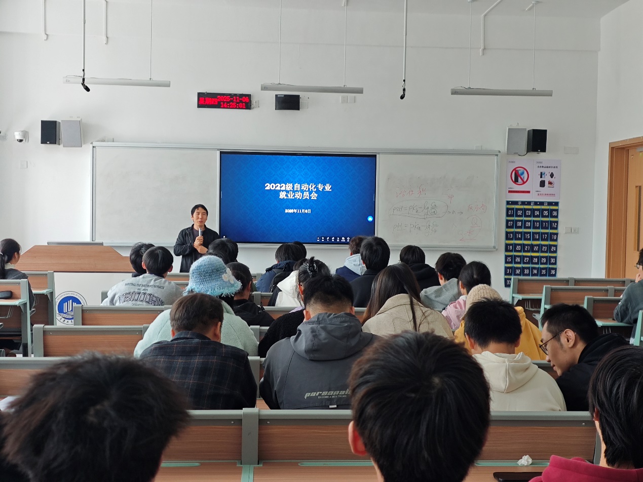 2025年11月6日下午2点,自动化专业就业动员大会在宏智楼223举行。大会由屈盈飞老师主持,2022级自动化专业全体员工参加。