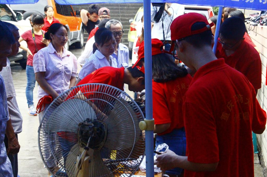 活动中,队员们热情地为居民介绍本次维修活动,并向广大居民发放安全使用家电注意事项手册。在维修过程中,队员们不仅将家电的故障进行了维修,并对家电进行了清理、润滑,为了延长家用电器的使用年限,队员们还对家用电器进行了改造,使其更加经久耐用。炎热的天气下,居民耐心地守候着,其间,居民们贴心地为队员们扇扇子、送水,以解暑热。居民收到修好的家电,十分高兴,对队员们更是赞不绝口。