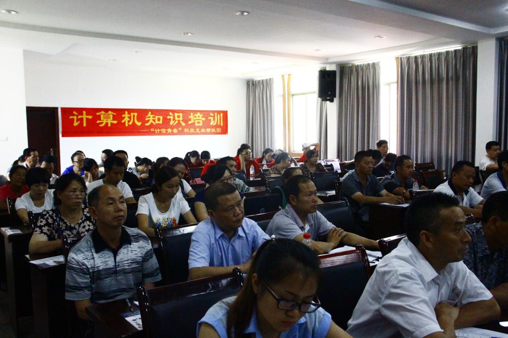 720日, 实践团到达篆塘镇后,与当地政府举行对口会议。在政府的全力支持下,召集镇政府工作人员和当地14个村的村干部共计70多名人员,开展一场计算机技能培训。培训主题是计算机基础知识培训和WordExcelPowerPoint等常用办公软件的实用技能。主讲人黄成诙谐幽默,通俗易懂的讲解方式获得培训人员热烈的欢迎。主讲结束后,实践团其他成员就电脑蓝屏,开机时间久,运行缓慢,易中病毒等问题进行答疑,现场将电脑出现的问题进行处理。随后,在政府工作人员的邀请下,实践团一行人为篆塘镇农业科技园服务中心的电脑进行系统更新与维护,收获了真诚的感谢。