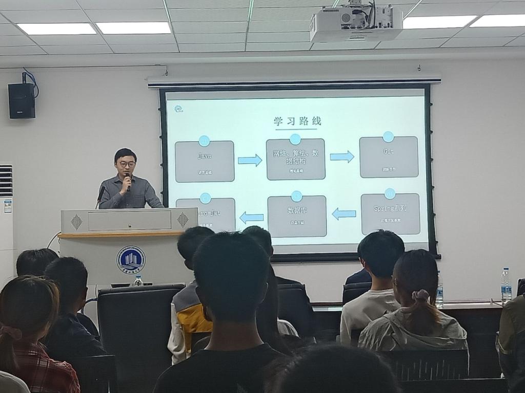 本次活动在同学们的热烈掌声中拉开序幕,黄鑫介绍了CO科创团队的历程、团队组成及荣誉。首先,由获得阿里巴巴offer的康生凯为大家进行就业分享交流,以丰富个人简历为媒介做好成长规划;还分享了他的学习方法,强调在学习中自省、总结的重要性。其次,成功入职京东的唐嘉宗介绍了在京东实习经历和开发项目,分享后端开发就业经验,介绍后端技术的招聘信息、算法题、项目的信息窗口。紧接着,成功考取上海大学学硕研究生的张效凯为同学们讲解考研的意义,分享了考研时间节点和院校选择的方法。接下来,朱泽峰以自身为例向大家介绍了加入CO后的学习经历和项目经历。最后,梁新元对本次精品活动做出总结,希望同学们“让优秀成为习惯”,讲解了学习方法和职业规划。
