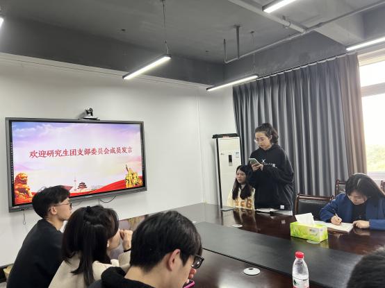 随后,陈静和黄婷婷发表就职演讲。两位同学首先对同学们给予的信任与支持表达感激,而后都展现出为第一届研分会团支部工作的热情,并希望能在未来的就职生涯里为大家贡献自己的一份力量,让这个新生的团支部大家庭茁壮成长。