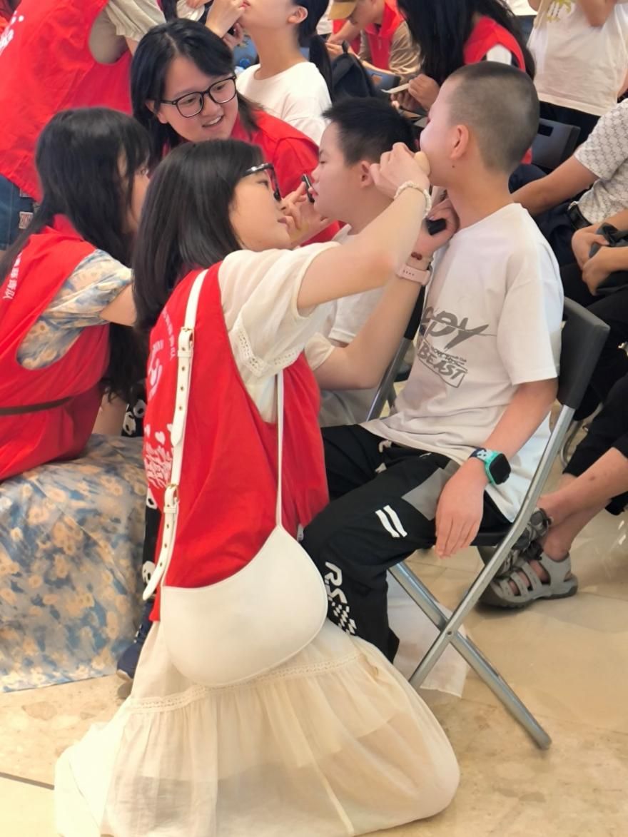 志愿者们按照基地老师的安排,各司其职,男生负责守在电梯口保护小朋友们的安全,女生负责为小朋友们画上精致俏皮的妆容、陪同家长未到的小朋友。节目表演从优美动听的合唱《春天在哪里》《采蘑菇的小姑娘》到充满活力的舞蹈《相亲相爱》,会场氛围欢快愉悦。基地老师在台下指导小朋友们的舞蹈动作,志愿者们纷纷举起手机为小朋友们拍照记录,现场吸引了大量路人驻足观看。活动最后,爱心单位负责人上台致辞,表达、呼吁全社会要加强对智力残障群体的关心关爱。