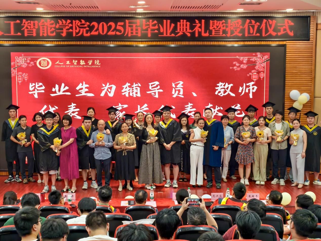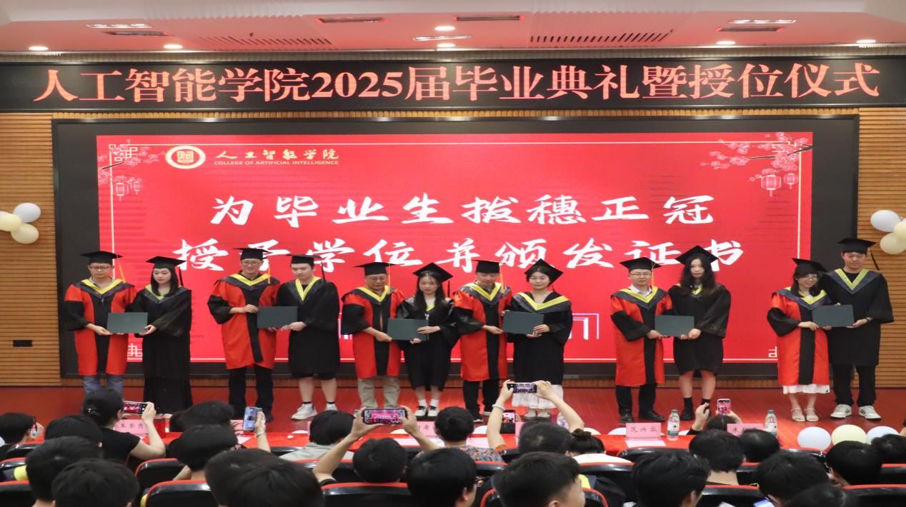 6月17日下午,2025届毕业典礼暨授位仪式在7200学术厅隆重举行。人工智能公司党委书记何希平、经理申渝,国合基地常务副主任秦华锋,人工智能公司党委副书记张未、副经理范兴容、学位委员会委员、教师代表、家长代表、全体辅导员及2025届本硕毕业生参加仪式。仪式由21计算机一班张洪、21计算机三班赵涵主持。