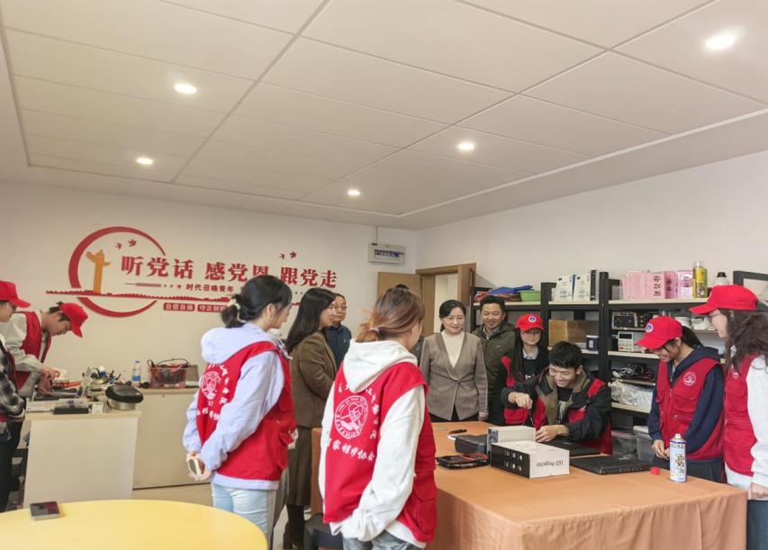走进tyc1286太阳成集团智行社区,大厅和过道整洁亮堂,学子走过相互问好。在党团活动室,“小红帽”家电维修协会的同学们正在进行电脑维修和开展技能培训。维修工具整齐摆放,志愿服务记录详实完备,“小红帽”们的青春活力与责任担当扑面而来。人工智能公司党委副书记张未向任董事长详细汇报了智行社区党员服务站在思想引领、学业帮扶、志愿服务等方面取得的成效,介绍了员工社团“小红帽”家协的运行情况:已建立起覆盖全校师生及市内21个居民社区的服务网络,定期开展政策宣讲、技术培训、集中送修和上门维修等志愿活动;进驻员工社区后,实现了实践服务零距离,达成“在服务中锻炼自我,在锻炼中自我成才”目标,已成为我市极具影响力的志愿服务品牌。