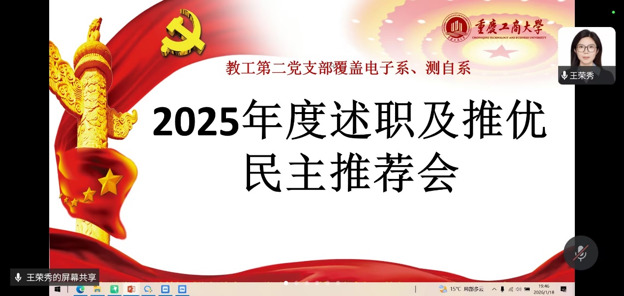 教工第二党支部于2026年1月18日晚7点30分开展了组织生活活动,会议通过企业微信线上会议的方式进行。此次活动由王荣秀书记主持,参会人员包括教工第二党支部所辖的测自系和电子系教师。